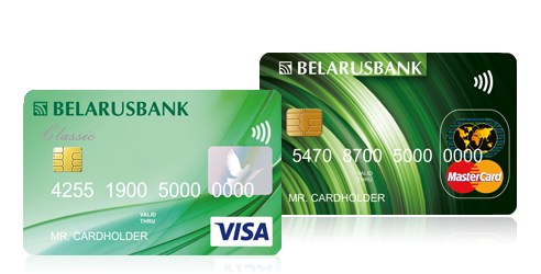 - картка Visa Classic і MasterCard Standard з безконтактної технологією оплати. При здійсненні покупок на суму до 20,00 бел.руб операція проводиться без введення PIN-коду або підпису чека.